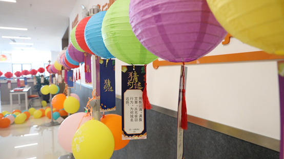 Solving lantern riddles, also known as playing lantern riddles, is aunique folk cultural activity rich in national style in China. We hang up allkinds of colored lanterns at the atrium and put up riddle cards on the lanternsfor everyone to solve, which enlightens wisdom and fits the festive atmosphere.Many colleagues spectating, some are eager to try, and some just “go for it”.The lantern riddles game was very popular, Justechers waiting in line, whichnot only reflects the festive atmosphere, but also showed the wisdom andcourage of the Justechers to challenge.