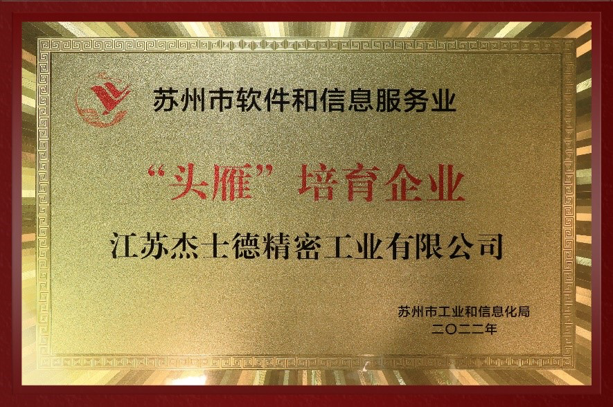 熱烈祝賀杰士德集團旗下子公司——江蘇杰士德精密工業有限公司獲評蘇州市軟件和信息服務業“頭雁”培育企業! 杰士德...