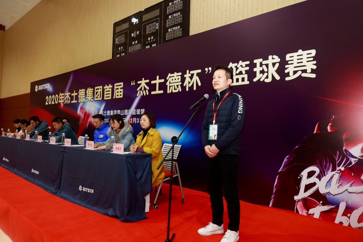 隨后,魏副校長代表杰士德集團創始人、董事長、杰士德大學校長景余祥致開幕詞。他強調,杰士德集團始終堅持以客戶為中心,以奮斗者為本,始終踐行“極致服務,創造客戶價值;持續奮斗,實現利益共享”的核心價值觀,大力營造有溫度、嚴要求、持續奮斗的組織氛圍。他還表示,景余祥董事長一直秉持著“做世界一流的智能制造企業”和“給員工最好生活”的初心,希望在本次首屆“杰士德杯”籃球賽上,所有運動員能夠團結拼搏、釋放自我、尊重對手、尊重裁判,給集團全體員工獻上一場力與美的視覺盛宴。