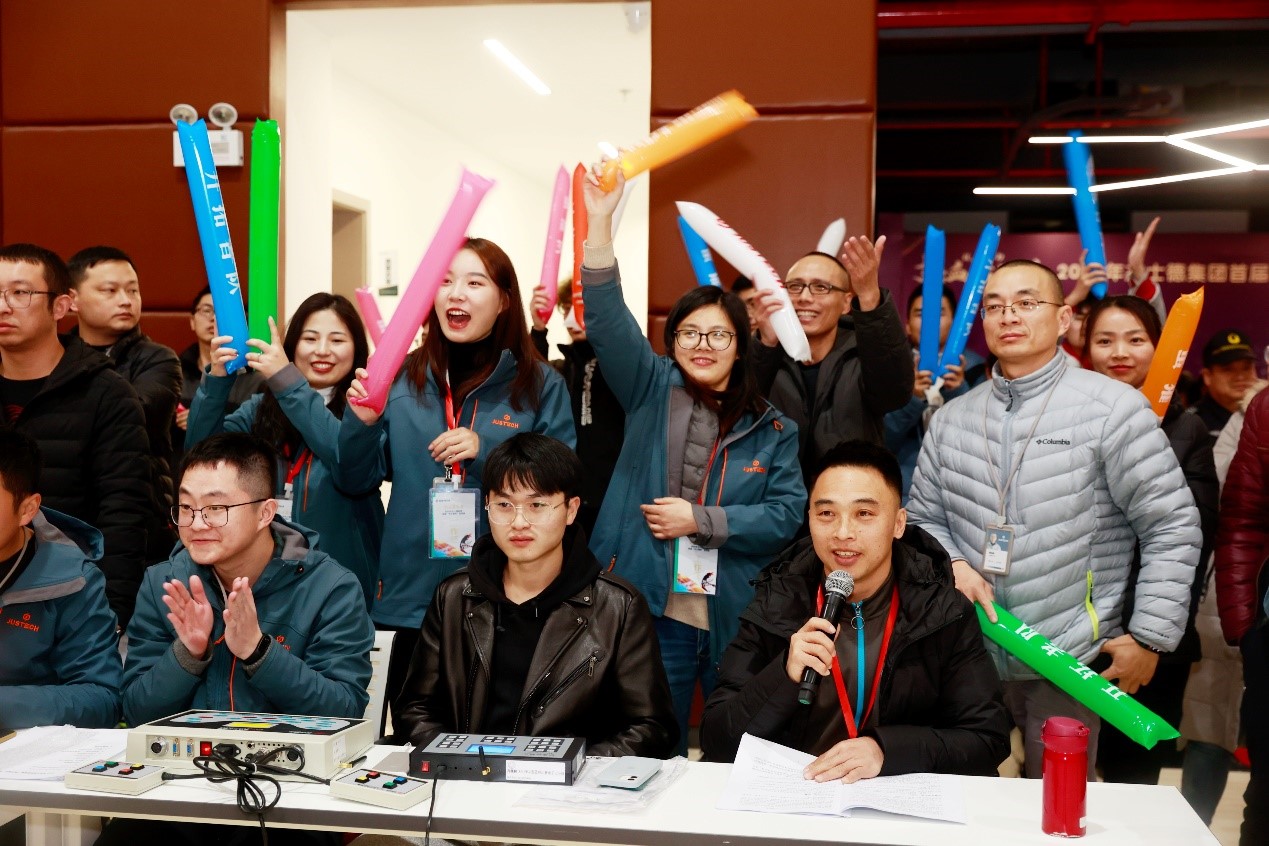 最后,在現場觀眾及各釘釘直播群中所有杰士德集團員工的期盼中,集團首席科學家張易功宣布籃球賽正式開賽。激情四射的樂隊演唱與青春活力的啦啦隊舞蹈后,一聲哨響,集團首屆“杰士德杯”籃球賽揭幕戰正式開賽!