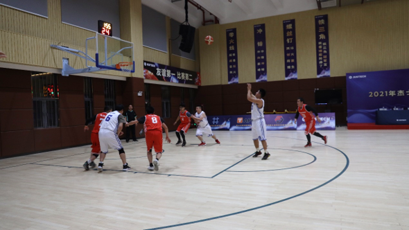 喜迎冬奧會,沖刺總目標,奮進新征程。經過近半個月的激烈角逐,2021年杰士德集團第二屆“杰士德杯”籃球賽在年末歲尾迎來了最后的決賽。12月30日晚18:30分,由昆山艾派科技有限公司組成的“機器人隊”與由集團子公司:菲克馳,村田精密,鑫鑫直線,峰之建,找找看貿易五家子公司聯合組成的“同路人隊”進行了最后的巔峰對決,青春活力的啦啦隊、動感十足的街舞表演與現場的觀眾們一起為雙方球隊加油助威。
