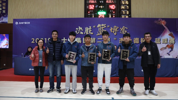 杰士德集團董事長特助、江蘇杰士德精密工業有限公司副總經理、杰士德大學常務副校長魏小俊,杰士德集團董事長特助、杰士德自動化項目管理中心副總經理、人力資源中心副總經理楊易喬,昆山菲克馳精密工業有限公司、昆山找找看貿易有限公司總經理柏岳雷,杰歌精密工業有限公司總經理陸錦華,鑫鑫直線精密機械有限公司廠長江忠銘,行政服務中心高級總監魏禮前,財經中心高級總監王莉,質量中心高級經理余曉鳳,采購中心經理李婷,信息技術中心負責人李芳等嘉賓及八支參賽隊伍、現場觀眾200余人共同出席籃球賽決賽及閉幕儀式。