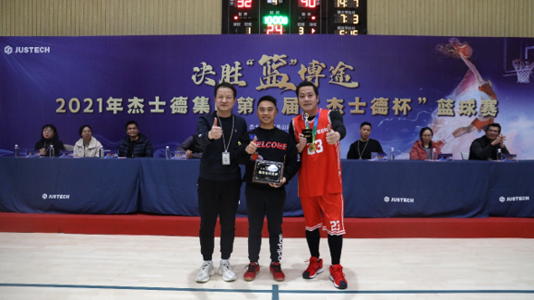 本次大賽組委會主任魏校長在閉幕式致辭中動情地說,為期9天的2021年杰士德集團第二屆“杰士德杯”籃球賽今天勝利閉幕了,首先代表遠在美國的集團景余祥董事長對取得優異成績的球隊和個人表示熱烈的祝賀,也對本屆籃球賽的成功舉辦、圓滿落幕表示祝賀。非常感謝各參賽隊、保障團隊、大賽組委會的各位成員以及各位嘉賓等對本次大賽的關注與支持。同時,也希望我們能夠把籃球場上展現出的拼搏的精神、必勝的信心、團隊的信念帶到工作中,正如我們本屆籃球賽的主題——決勝“籃”博途!在新的一年里,希望我們的杰士德就是決戰決勝,取得業務和組織能力建設的雙豐收!再過二十多個小時,就是新的一年了,也代表景余祥董事長及各位主管,對在場的各位和集團的全體員工致以誠摯的問候與祝福,祝大家新年快樂、萬事順遂!