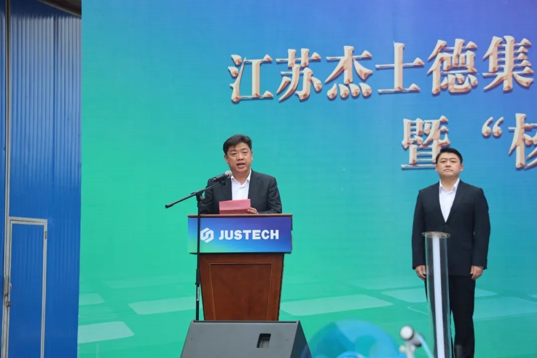 魏小俊副總經(jīng)理代表杰士德集團及景余祥董事長對各位領(lǐng)導(dǎo)出席海安基地的投產(chǎn)儀式表示熱烈歡迎,對集團概況進行了簡要介紹。他回顧了自2020年以來,杰士德集團與海安從結(jié)緣、洽談到項目落地的歷程。他表示,海安政府敢為人先、追求卓越、求真務(wù)實的擔(dān)當(dāng)精神堅定了杰士德扎根海安、深耕海安、貢獻海安的信心和決心。
