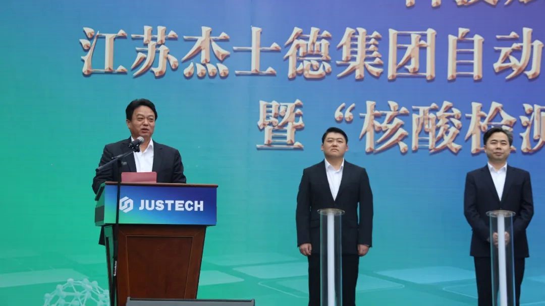 于書記在講話中表示,疫情發(fā)生以來,杰士德集團心系海安疫情防控工作,用實際行動詮釋了企業(yè)的責(zé)任擔(dān)當(dāng)和家國情懷。此次杰士德集團研制的“核酸檢測貼標(biāo)機”,速度可達100-300件/分鐘,貼標(biāo)簽合格率達99.99%,將有效減少醫(yī)務(wù)人員工作量,提升核酸檢測工作效率,進一步提升海安疫情防控水平。于書記代表海安市委、市政府和百萬海安人民,對杰士德集團的大愛行為表達了由衷的感謝!