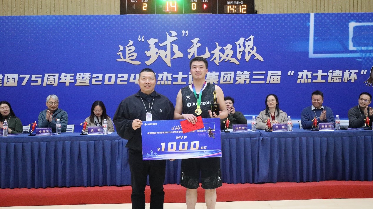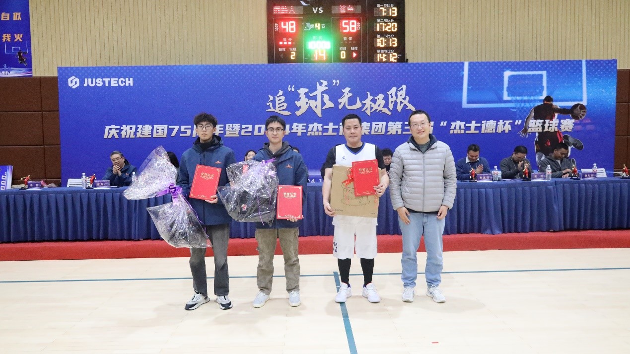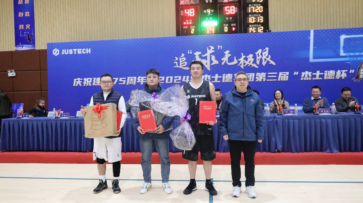 最后,本次大賽仲裁委員會主任、集團景余祥董事長宣布慶祝建國75周年暨2024年杰士德集團第三屆“杰士德杯”籃球賽閉幕!