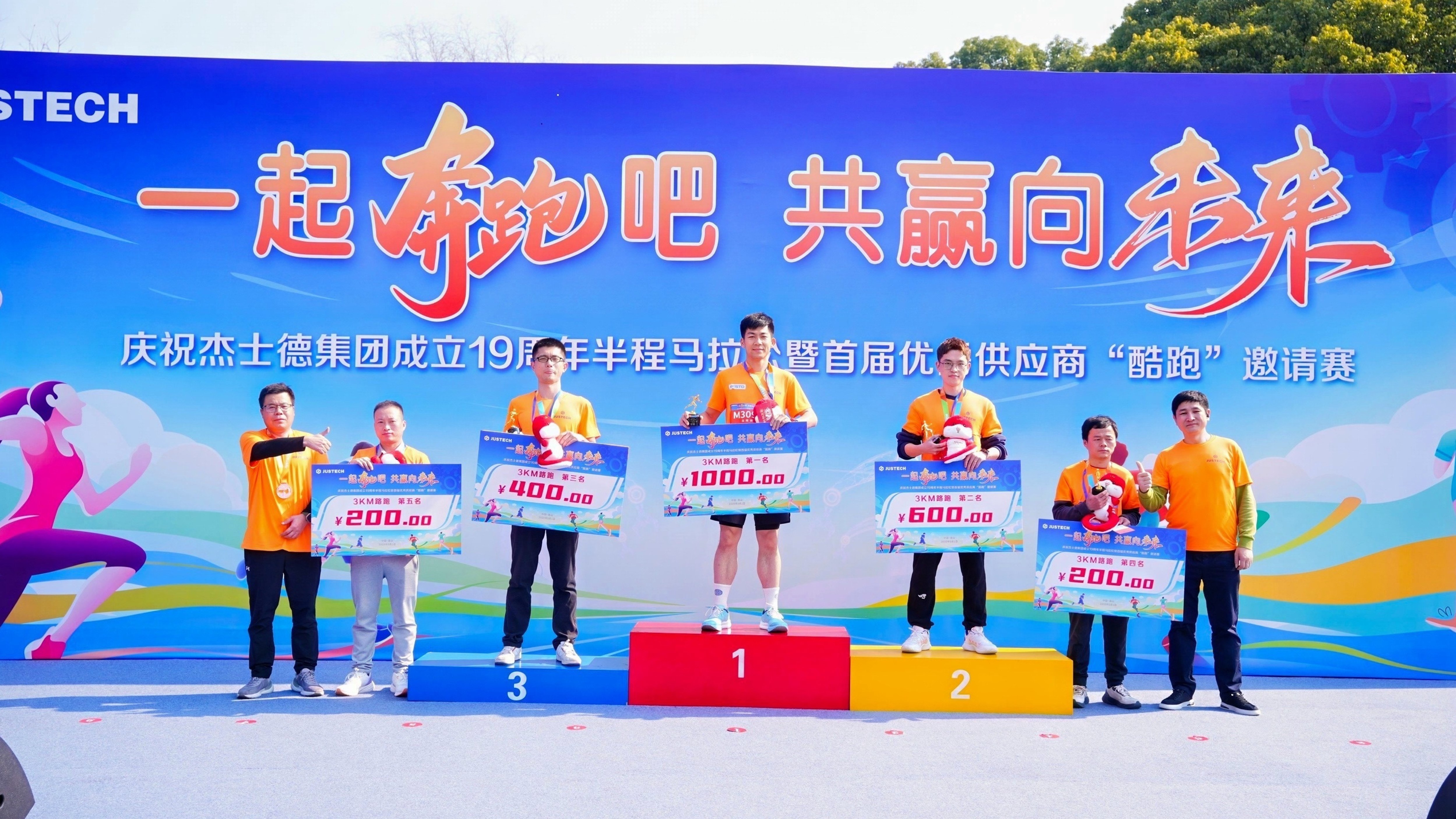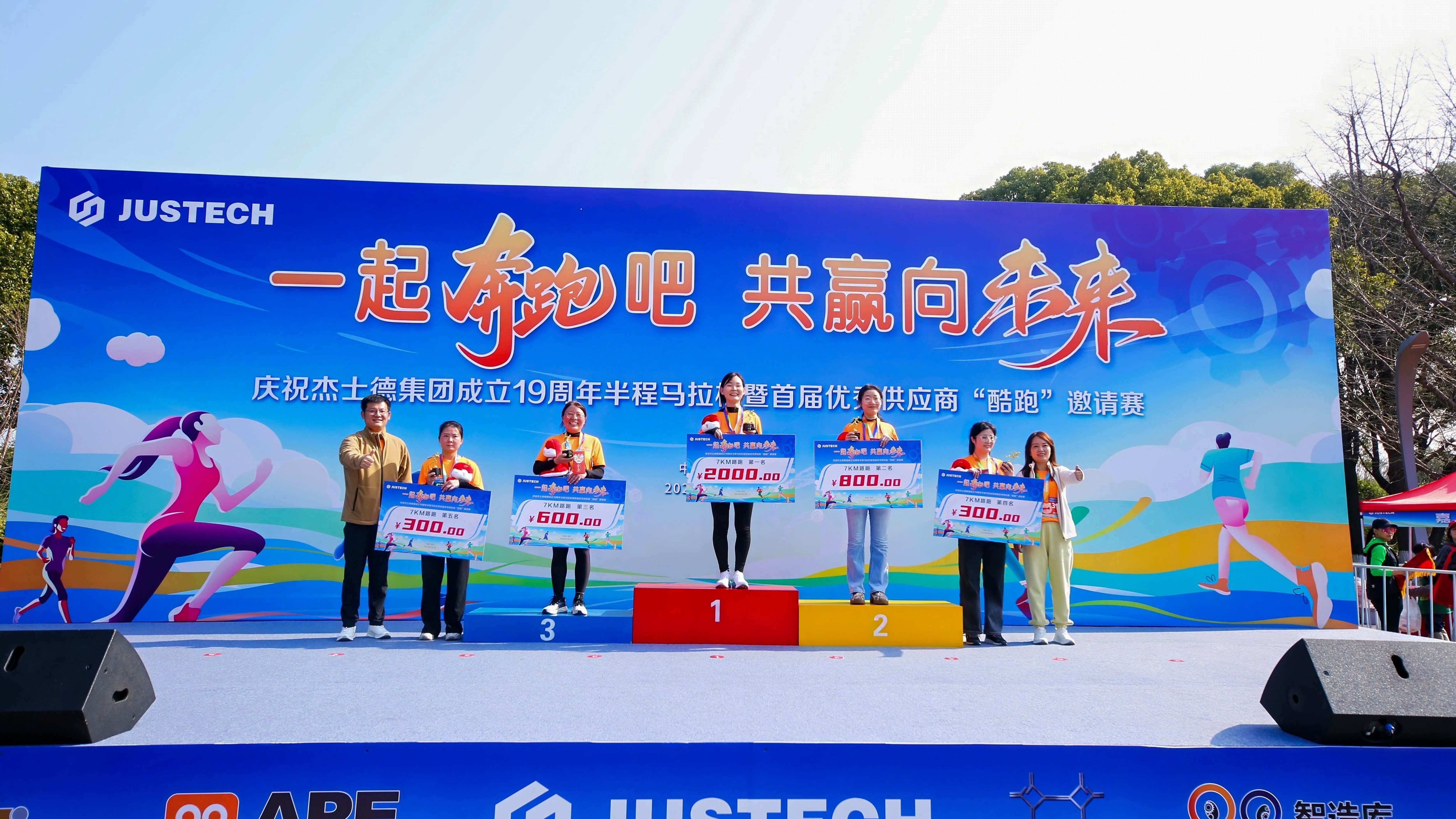經過激烈的角逐,男(女)子半程馬拉松、7公里、3公里前五名誕生,集團高管為他們頒發獎杯、獎金及19周年賽事吉祥物。