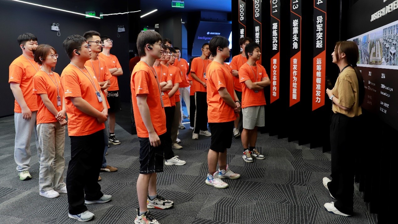 子公司介紹環節后,杰士德大學隨即組織學員實地探訪園區。在老師的引導下,學員們穿梭在杰士德大學的長廊里,從一張張圖片中感受杰士德的發展歷程,聆聽他成長的聲音。穿過科技感十足的技術創新中心,走進艾派科技高效運轉的生產車間。他們親歷了繁忙卻井然有序、寬敞明亮的生產作業區,也感受了綠意浸潤、舒緩身心的休閑空間。這場貫穿工作與生活場景的沉浸式體驗,向學員們生動詮釋了一個真實、開放、充滿蓬勃生命力的杰士德。