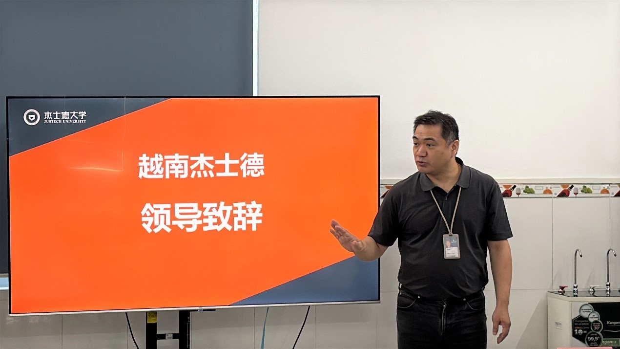 “在座的每一位,都是越南杰士德發展路上的中堅力量,是公司一路走來最珍貴的伙伴。”開營儀式上,陳彥雄總經理的話語滿含真誠與期許。他說道:“隨著越南承擔的任務越來越重,我們需要更多能扛事、會干事的人才。希望大家通過這次培訓,不僅能學到管理知識,更能找到成長的方向——待你們走上管理崗位,愿我們繼續并肩作戰,在實現公司發展的同時,也能圓自己的職業夢想。”