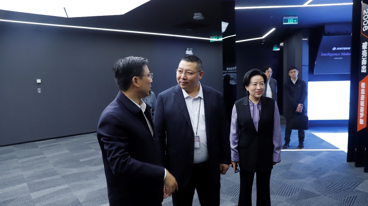 昆山市政府辦、市工信局、巴城鎮分管領導隨同調研,杰士德集團董事長特助、杰士德大學常務副校長魏小俊陪同參觀接待。