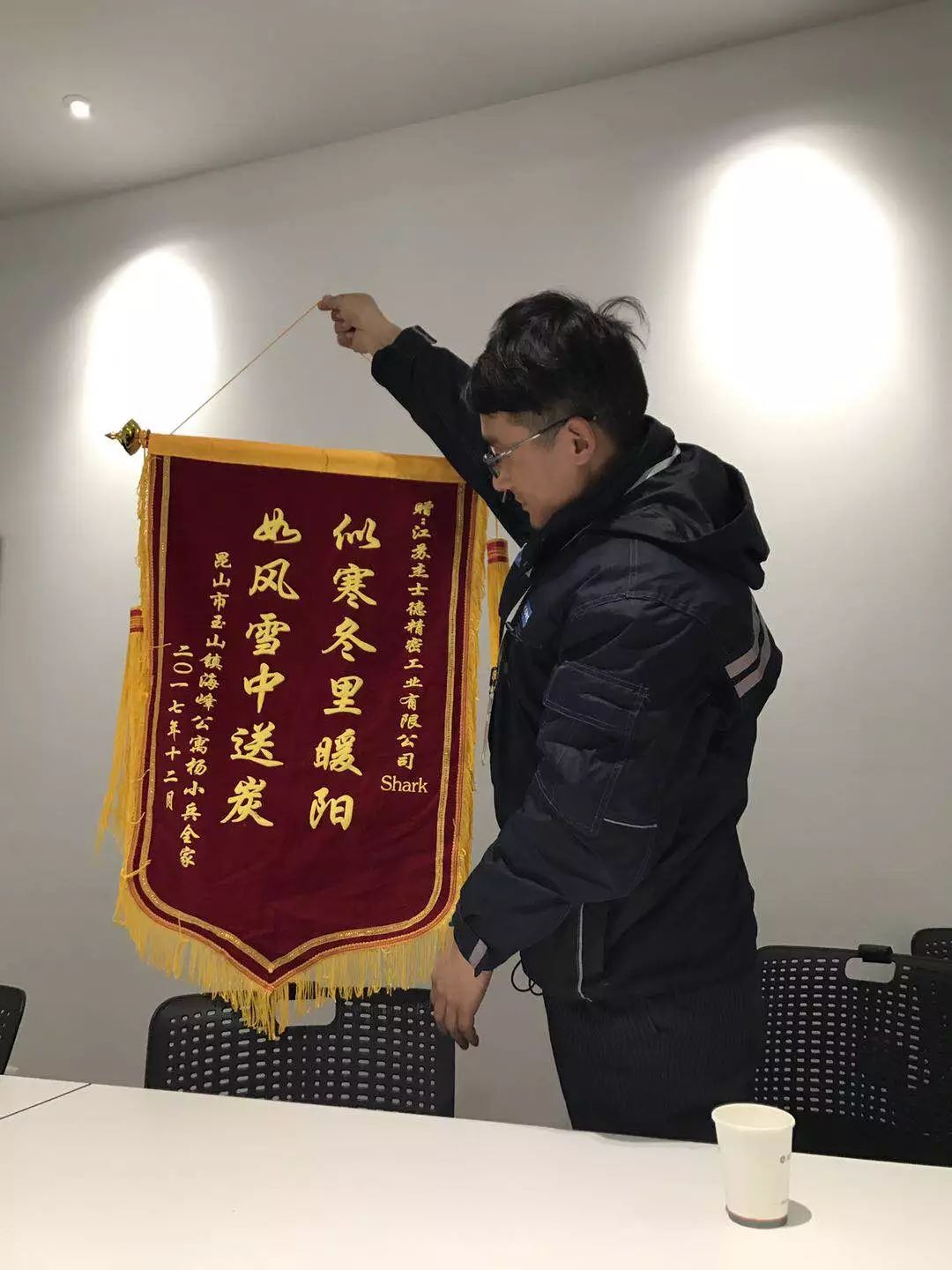 面錦旗,聊表心意。”順勢拿起了錦旗,Blaby代表Shark接過了這份沉甸甸的感恩……