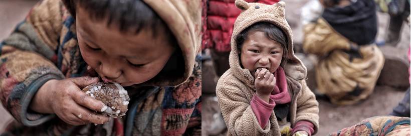 爛衫,食不果腹”,生活在大城市的我們,很難想像在冬季穿著破爛的單衣、露著腳趾的單鞋、吃著冰塊似的土豆是什么感覺。也許你不會相信在中國還有如