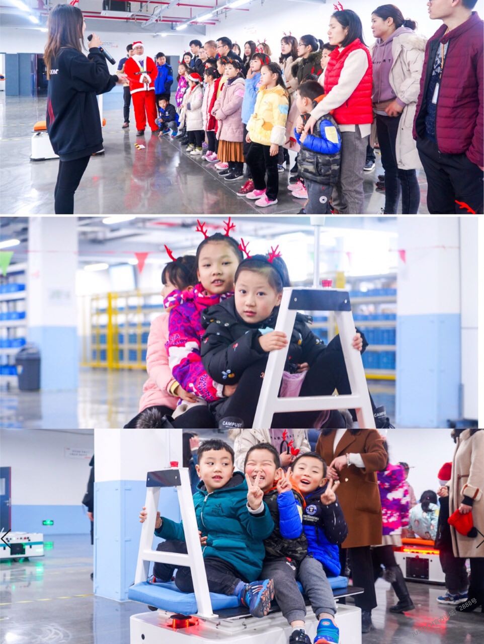 最后一站,我們來到了艾派科技。小朋友和爸爸媽媽一樣,經過嚴格的安檢后進入到了車間。隨后,小朋友們在工作人員的指導下有序坐上由艾派科技自主設計研發的AGV小車,體驗了一把“自動駕駛”的感覺。