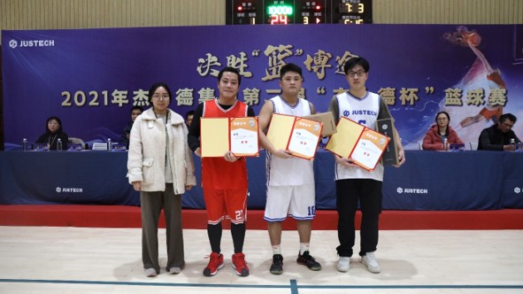 本次大賽組委會主任魏校長在閉幕式致辭中動情地說,為期9天的2021年杰士德集團第二屆“杰士德杯”籃球賽今天勝利閉幕了,首先代表遠在美國的集團景余祥董事長對取得優異成績的球隊和個人表示熱烈的祝賀,也對本屆籃球賽的成功舉辦、圓滿落幕表示祝賀。非常感謝各參賽隊、保障團隊、大賽組委會的各位成員以及各位嘉賓等對本次大賽的關注與支持。同時,也希望我們能夠把籃球場上展現出的拼搏的精神、必勝的信心、團隊的信念帶到工作中,正如我們本屆籃球賽的主題——決勝“籃”博途!在新的一年里,希望我們的杰士德就是決戰決勝,取得業務和組織能力建設的雙豐收!再過二十多個小時,就是新的一年了,也代表景余祥董事長及各位主管,對在場的各位和集團的全體員工致以誠摯的問候與祝福,祝大家新年快樂、萬事順遂!