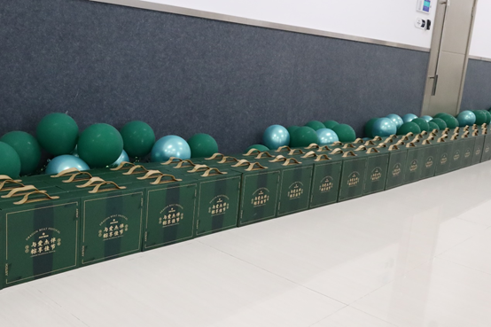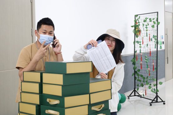 為了能夠向所有沖刺在量產一線的同事們親自表達敬意、送上節日的祝福,我們的禮盒發放及現場游戲活動從5月31日一直持續到了6月1日。貼合端午氛圍的綠色清新風格的場地布置、在氣球環繞中整齊擺放的禮盒,早早就位的杰士德大學工作人員——三天的時間里,我們在杰士德大學中庭翹首期待著大家的到來。