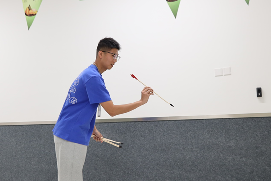 現場組織了兩個小型游戲活動——傳統游戲投壺和趣味游戲蒙眼乒乓球。投壺既是一種禮儀,也是一種游戲,這個傳統活動深受大家喜愛,我們對游戲規則進行了適當的創新,投進一只羽箭即可獲得一次抽獎機會。而蒙眼乒乓球則考驗著大家在黑暗中的方向感和平衡感,這個小游戲為大家貢獻了最多笑聲與歡樂。