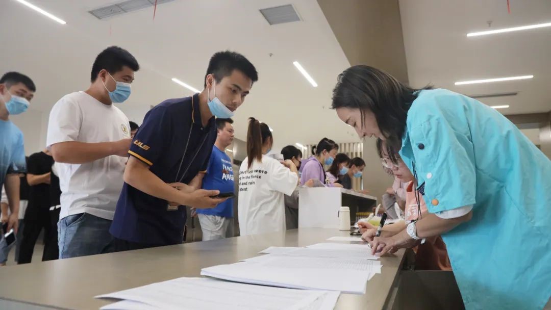 在上門體檢開始前,杰士德大學(xué)工作人員根據(jù)實際情況為各部門同事安排了合理的體檢批次,以期減少員工扎堆體檢的現(xiàn)象。同時,工作人員也會提前告知注意事項、組織體檢同事遵守防疫準則、進行現(xiàn)場協(xié)調(diào)引導(dǎo)排練……這些充分細致的工作為本次體檢工作提供充分的保障。活動當(dāng)天,員工按照體檢安排有序來到現(xiàn)場簽到,自覺耐心地排隊領(lǐng)取體檢表格,并在工作人員的引導(dǎo)下進行逐項檢查。