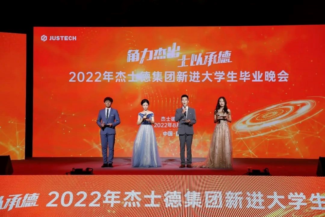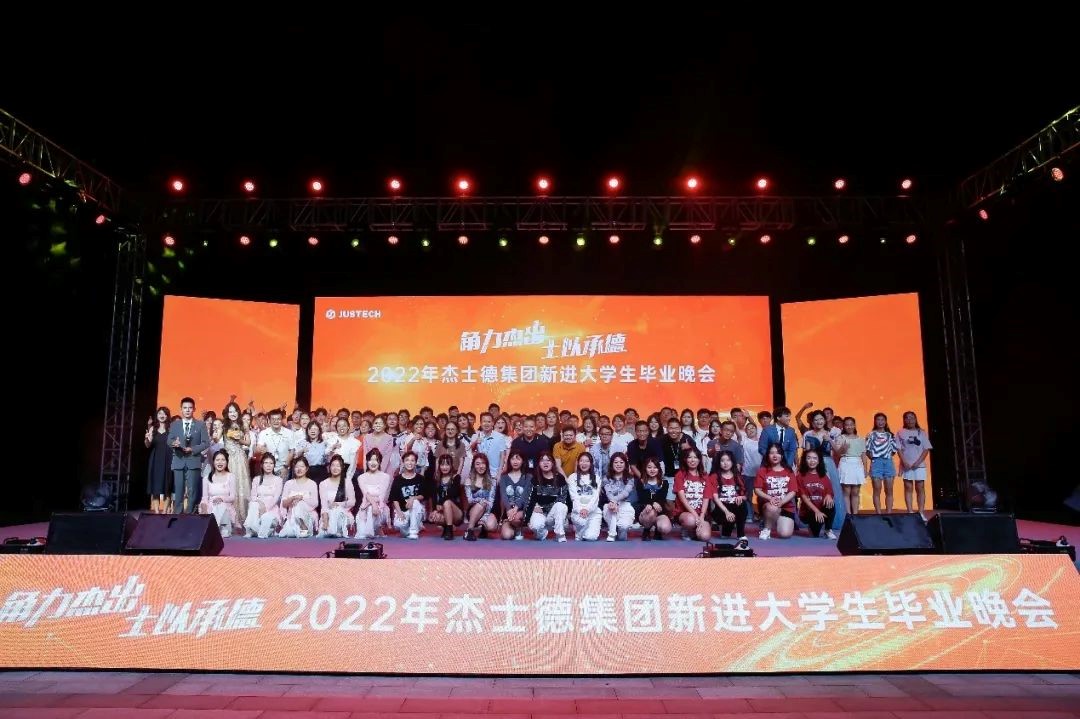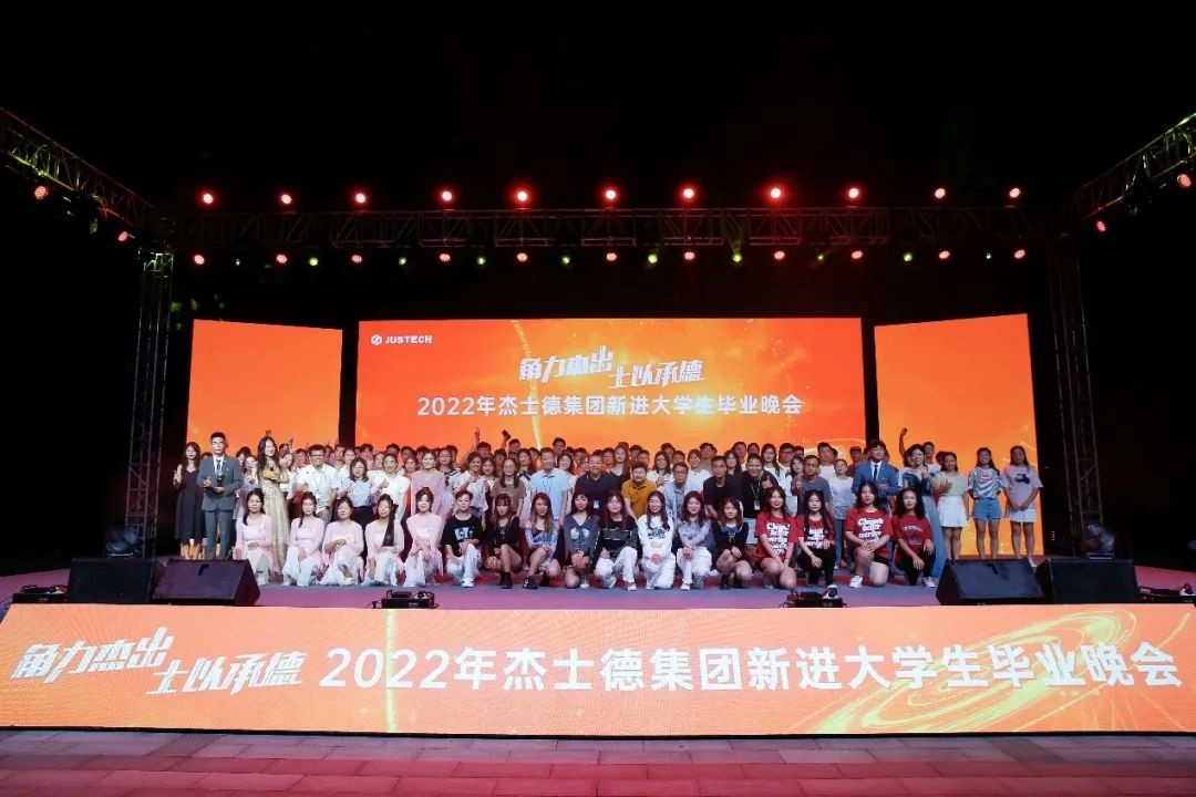 以溫暖底色致敬奮斗青春,8月27日19:00,2022年杰士德集團第七屆卓越班新進大學生培訓結業匯報演出在昆山園區中心廣場火熱舉行。