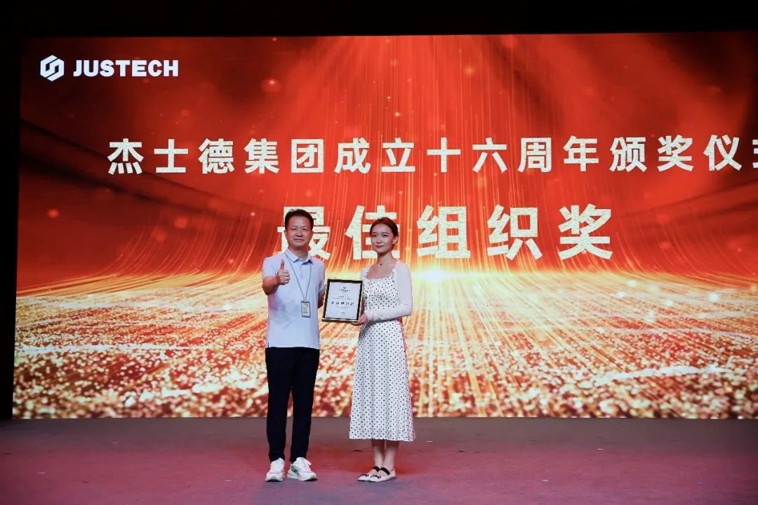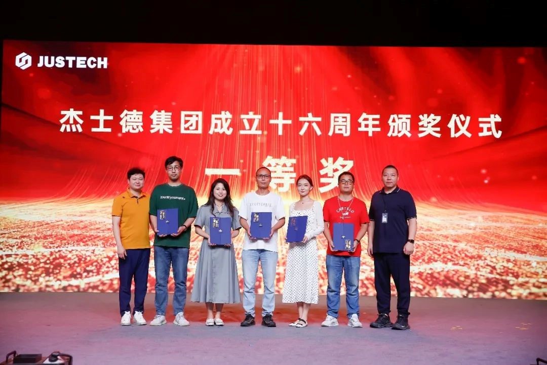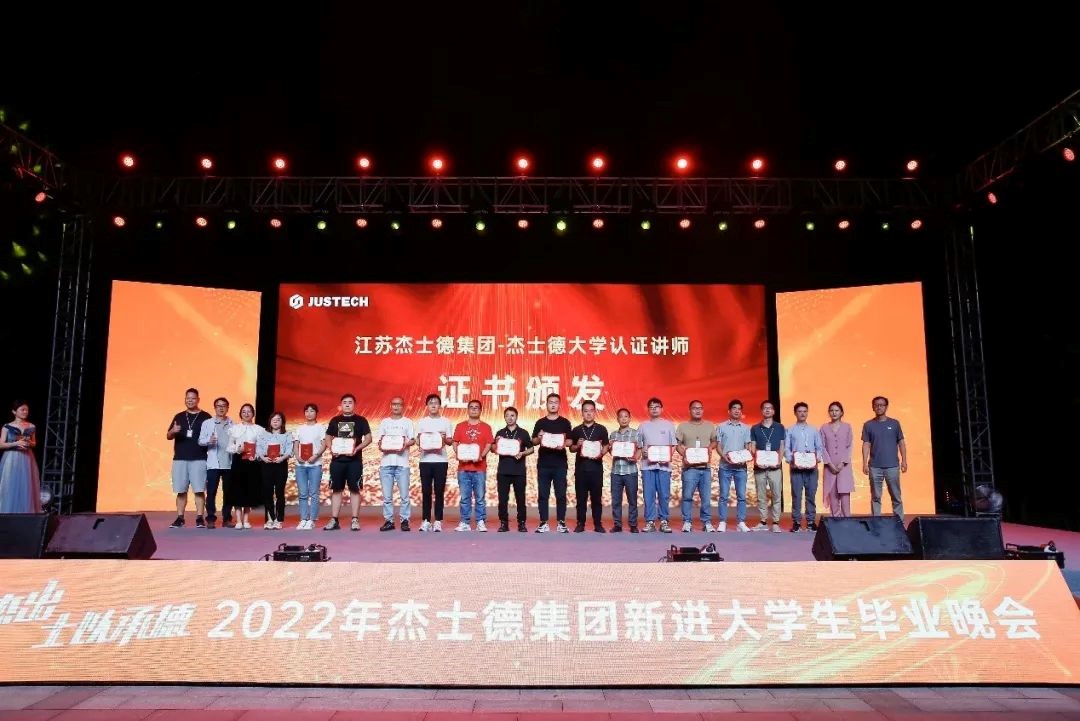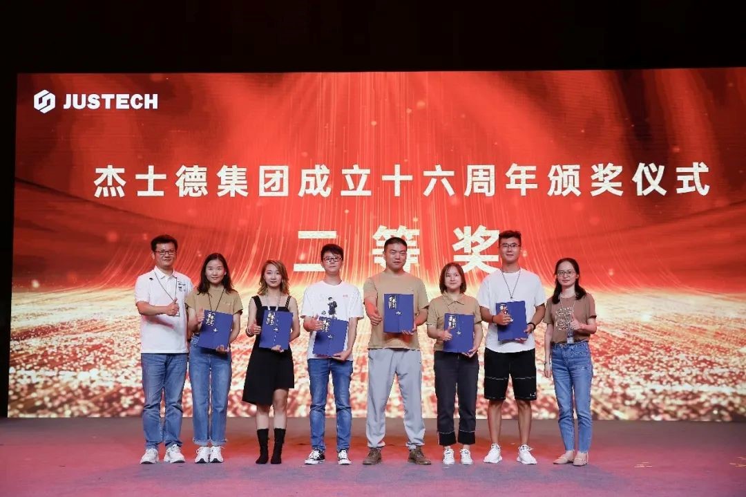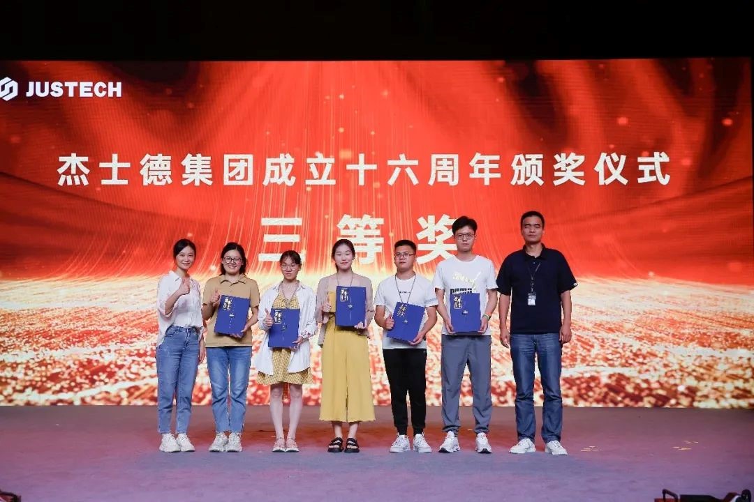 來自艾派科技研發中心的陳總監則以一曲深情縈繞的《知否知否》,在晚會的尾聲展示了杰士德管理者團隊的多姿多彩,同臺獻藝,上下齊心,未來更可期。在晚會中,集團為在本次卓越班培訓組織及實施工作中,保障培訓工作順利展開的眾多講師與支援人員分別頒發了“最美講師”“最美志愿者”獎項。同時,借由大學生畢業晚會這一隆重特別的場合,集團還為十六周年獻禮活動的獲獎部門、個人及認證合格的集團內部講師分別頒發了獲獎證書及資格證書。