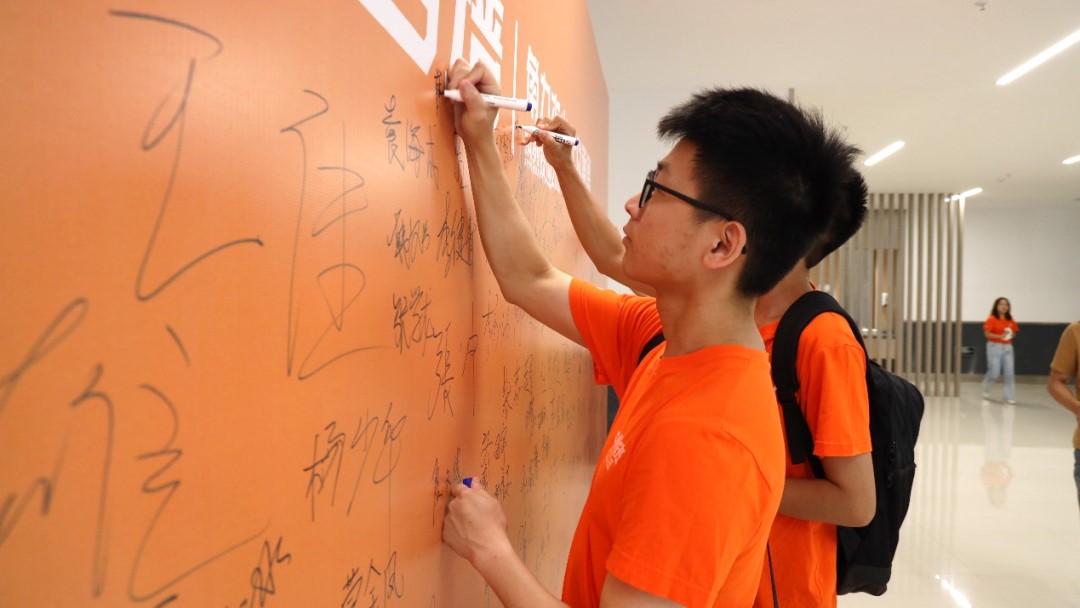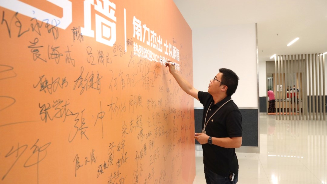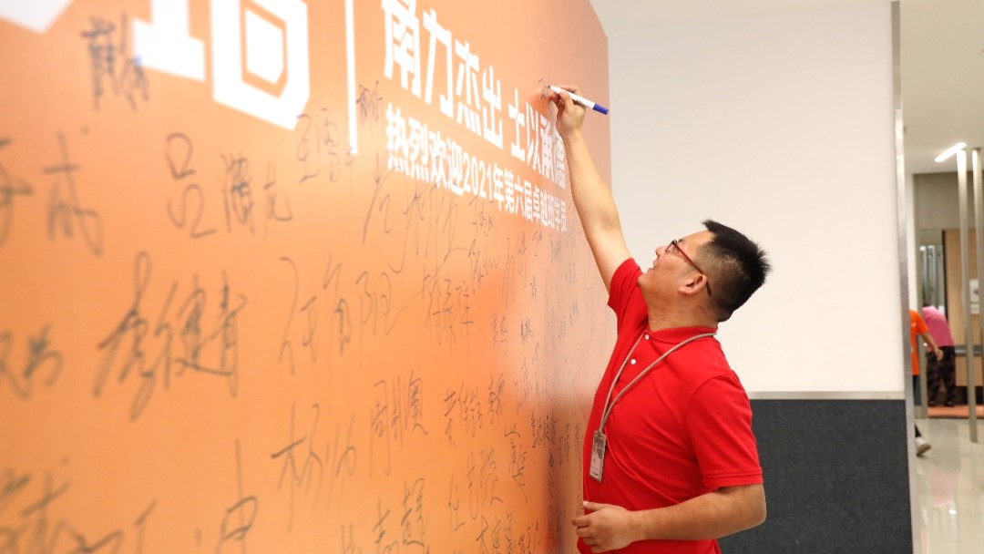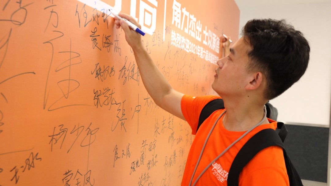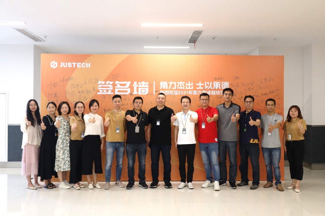 2021年7月19日上午,在昆山園區總部C1棟杰士德大學教室里,集團迎來了2021年第六屆卓越班140余名新同學、新同事。青春熱烈、風采飛揚,新進大學生們在“角力杰出、士以承德”的主題簽名墻上留下了清晰有力的簽名,這標志著杰士德集團第六屆卓越班正式開營。