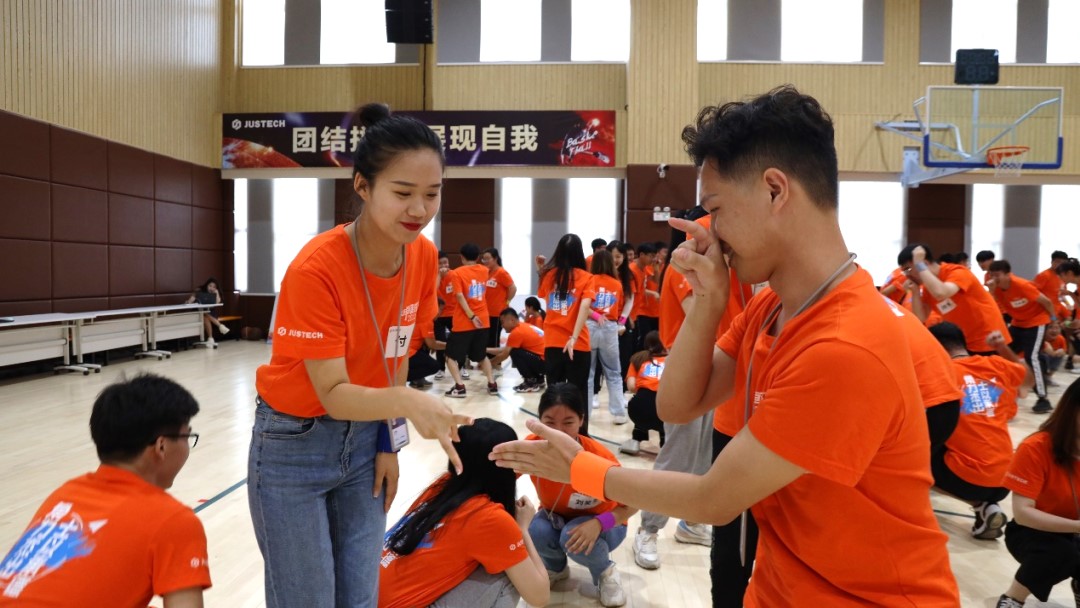 在簡短隆重的開營儀式之后,由杰士德大學旗下拓展研究室精心準備和組織的破冰活動在杰士德集團昆山園區室內籃球館舉行,在有難度、有深度的活動設計中,增強大學生之間的親切感和默契度,在活動中跨越、打破、挑戰,學習團結協作、目標明確、執行有力?;顒蝇F場,我們看到了大學生們的熱情與聰慧、獨立和協作……